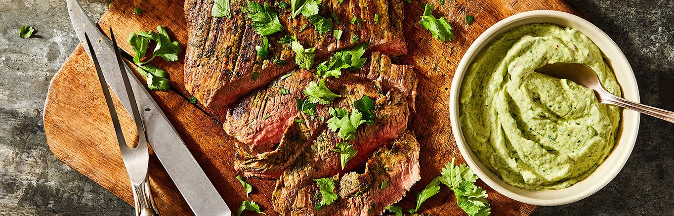 Read moreWhen you want to save time and still deliver a home-run meal (or two!), make this Big Batch Flank Steak with Creamy Chimichurri Sauce your go-to grill recipe. The flavorful herb marinade for this chimichurri flank steak doubles as a creamy chimichurri sauce with the addition of a secret ingredient: savory cream of mushroom soup. The olive oil-based marinade helps tenderize lean flank steaks, so they come off the grill juicy and ready to eat with creamy chimichurri sauce, and remain just as delicious the next day, when you can serve them as Chimichurri Steak Wraps. Luckily, chimichurri flank steak makes enough for plenty of leftovers, and comes together in under 25 minutes of active cooking time. And because you can re-use both the chimichurri sauce and the meat so many ways, it’s a great recipe for meal prep.