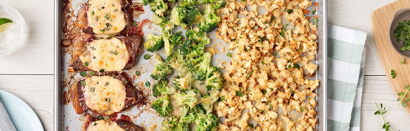 Read moreOur recipe for Sheet Pan Cheesy Steak and Potatoes takes meat and potatoes to the next level- and it’s all made on a single baking sheet so cleanup is a breeze. Plus, it’s oven-ready in just 10 minutes, thanks to convenient ingredients like frozen veggies (diced potatoes with onions and pepper and broccoli florets) and Campbell’s® Condensed Cream of Mushroom Soup (the base for this dish’s creamy sauce). It’s the ultimate fast, hearty, home-cooked meal for busy weeknights- or whenever you need to satisfy your meat and potato cravings effortlessly.