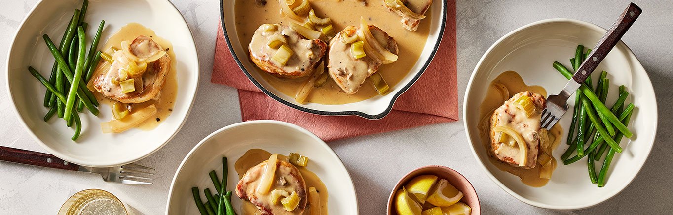 Read moreYou may need to re-evaluate your favorite pork chop recipe after tasting this decadent dish. Its creamy, flavorful white wine sauce comes together quickly, thanks to Campbell’s® Condensed Cream of Mushroom Soup, allowing you to savor the day without spending all of it in the kitchen. In fact, you can pull our pork chops together in under 30 minutes, leaving enough time to whip up some roasted potatoes or crunchy green beans to serve alongside them.