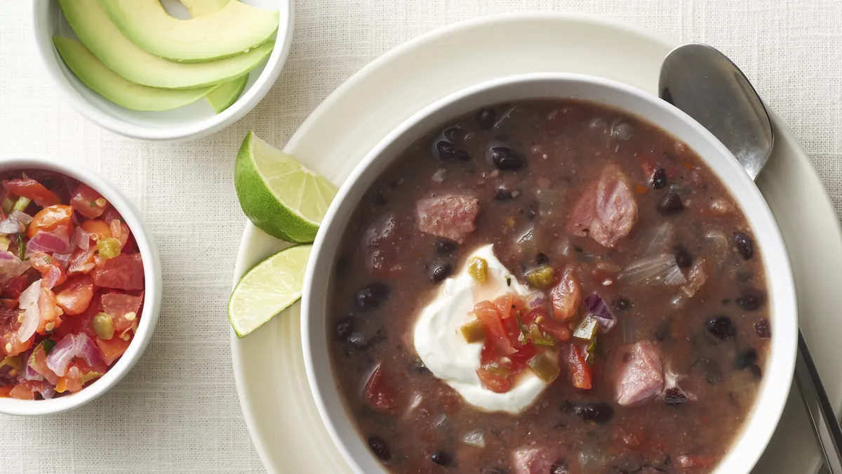 - Stir in the soup and stock and heat to a boil. Stir in the beans. Return the chicken to the skillet. Reduce the heat to medium-low. Cover and cook for 5 minutes or until the chicken is cooked through. Stir in the spinach and lemon juice and cook until spinach is wilted. Season to taste. Sprinkle with the bacon.