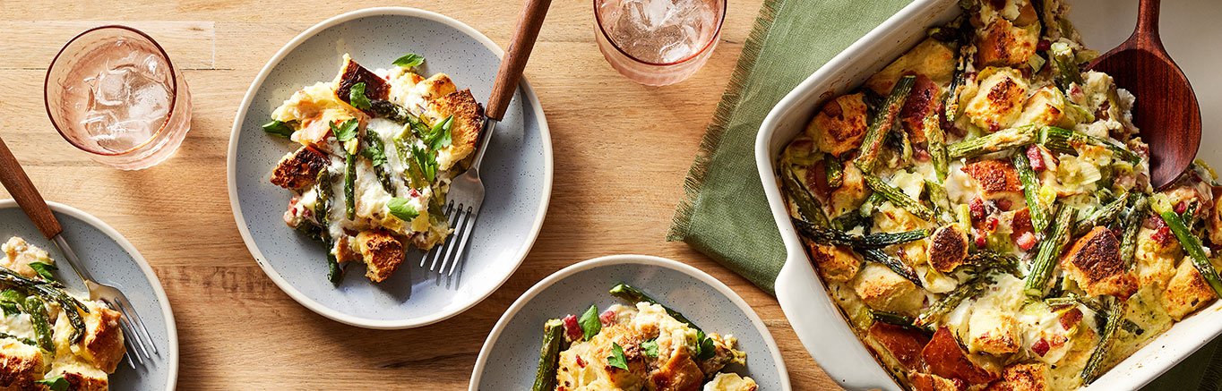 - Pour over bread; toss to evenly coat in custard mixture. Let stand 10 minutes. Toss again to make sure as much of the custard mixture as possible is soaked up by bread. Press down slightly on top of bread, and sprinkle with toffee bits.