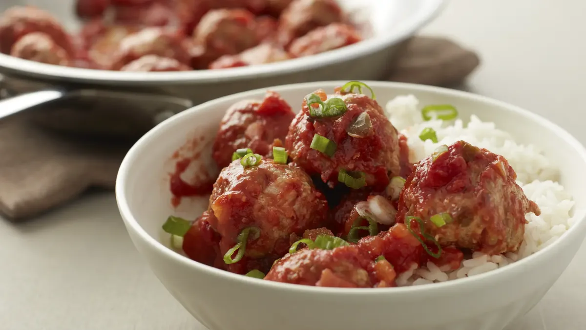 - In large bowl, combine ground beef, 1/2 cup of the corn and remaining meatball ingredients; mix well. Shape into 1-inch balls; place on cookie sheet. Refrigerate 30 minutes or until set.