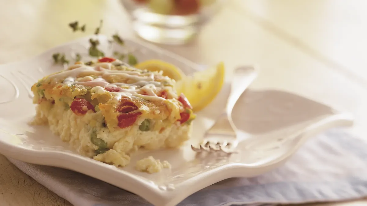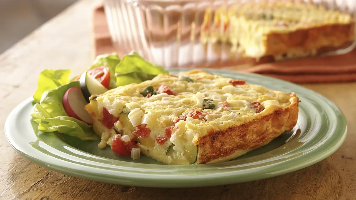 Enjoy this delicious brunch bake made using Original Bisquick® mix and layered with cheese and tomatoes.