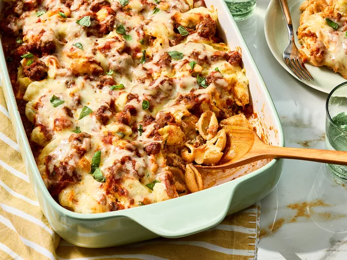 This Italian wedding pasta bake really captures the flavors of Italian wedding soup. It's lightly cheesy, veggie- and meatball-forward, fragrant with fresh herbs, and baked under a crisp Parmesan and panko breadcrumb topping.