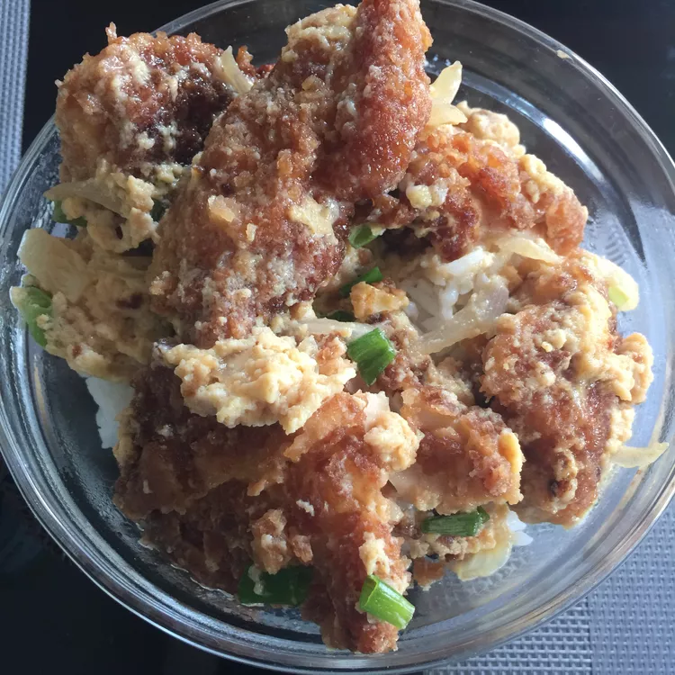 Read moreRecipe for a popular Japanese rice bowl, also known as Katsudon. Garnish with sliced green onions.