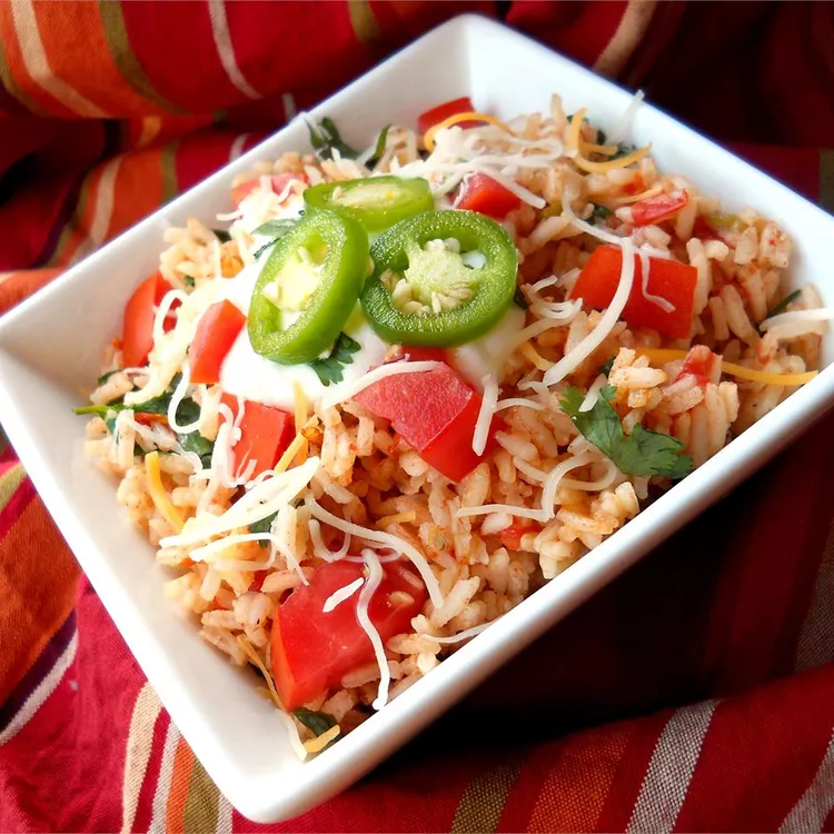 This is an excellent Mexican rice recipe with bell peppers (not to be confused with Spanish rice) that I make as a side to serve with all of my Mexican dishes. The key is cooking the rice properly and using good quality chicken broth or stock.