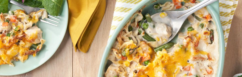 Read moreComfort food at its finest, this chicken and noodle casserole recipe uses our delicious Mushroom Soup to add creaminess and flavor to chicken, noodles and veggies. If you’re looking to save time during the week, this dish freezes well and can be made ahead. See recipe tips to learn how. You might also like: Country Chicken Casserole which has a layer of stuffing instead of noodles, or Super Chicken Casserole which has the best of both.