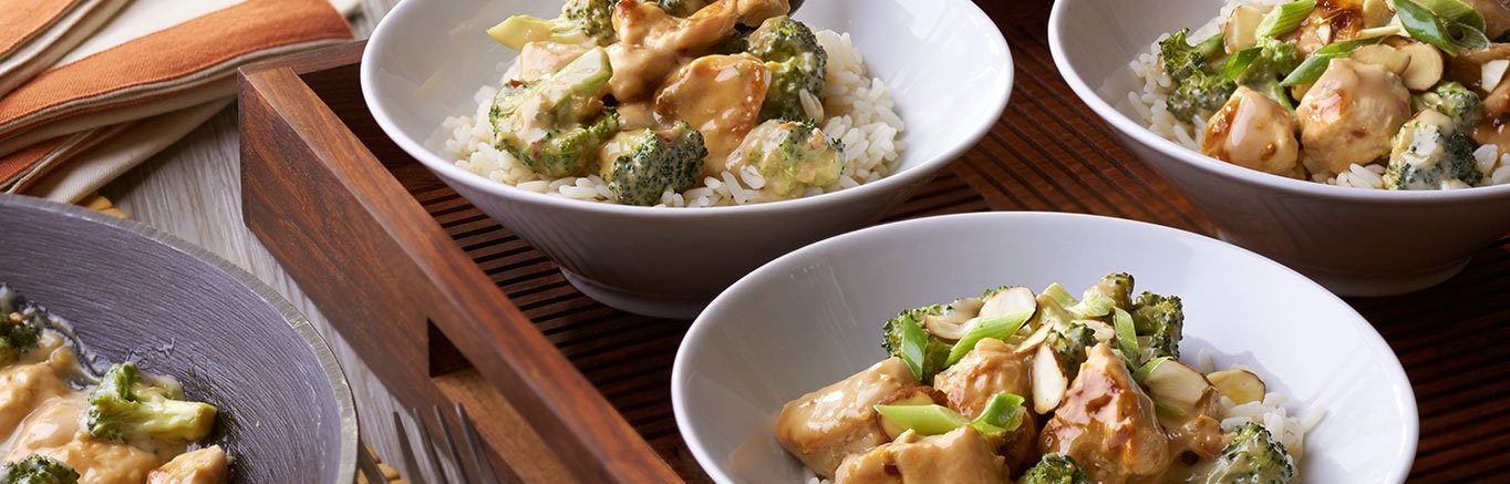 Looking for a new chicken dinner idea? This family-pleasing recipe can be on the table in just 30 minutes using ingredients that you probably have in your pantry. Garlic, honey and soy sauce give our cream of mushroom soup a bit of an Asian flair while crushed red pepper gives just the right amount of heat. With a full serving of veggies, and an excellent source of protein, Vitamin A and Vitamin C, you can’t go wrong. Boost your fiber, too, by serving it over cooked brown rice!