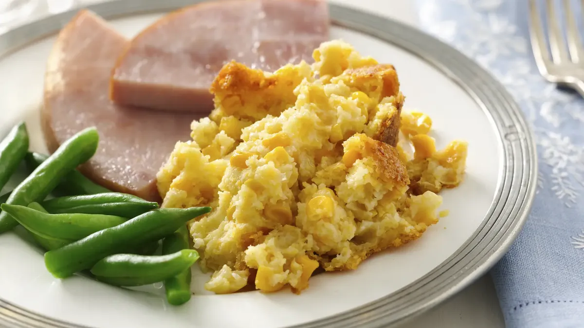 Slow-cooker corn casserole or corn pudding is a great side dish for holiday meals or parties. Betty Crocker™ cornbread & muffin mix takes just 5 minutes of prep to bring it all together and let the slow cooker do the rest! If you want to vary the flavor, change up the cheese blend with a pepper Jack cheese instead of the Colby-Monterey Jack called for. Let the dish stand for five minutes before serving up.