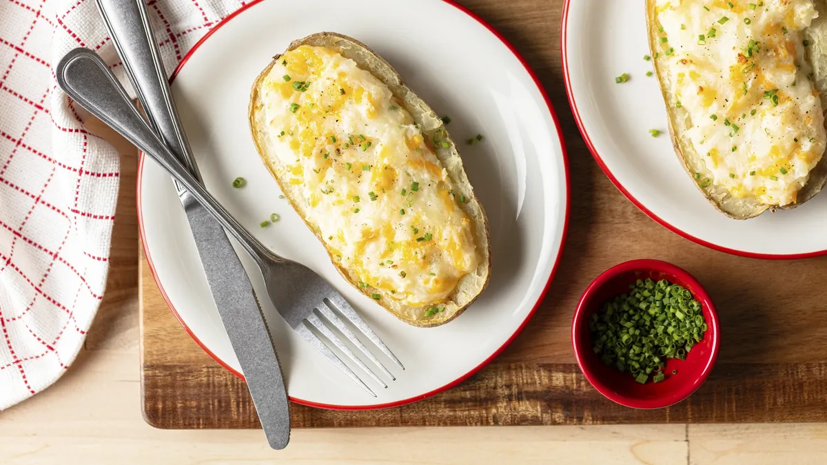 No need to wait for a fancy steakhouse dinner to enjoy cheesy, gooey, golden brown Twice Baked Potatoes–not when you can whip up this classic side dish in the comfort of your own kitchen! It’s easier than you think to tackle this creamy, craveable dish, so you can make any meal feel extra special.